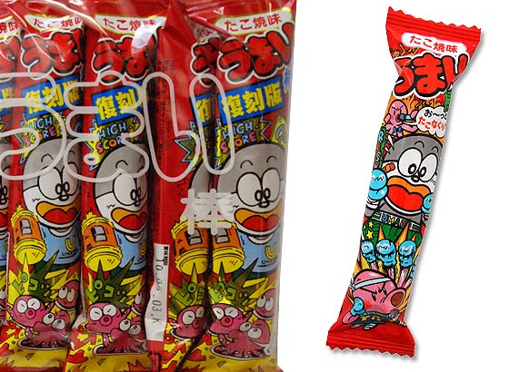 おなじみのうまい棒! 甘辛ソースがクセになるタコやき味です